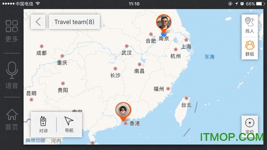 组团、组队结伴出行功能(通过同步轨迹技术,找车/找人/找同伴;领队轨迹跟随;群组导航;群组对讲机功能),让自驾出游更加安全便捷。实时位置共享和语音对讲,确保车队成员随时保持联系。