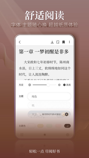 阅读界面支持字号、间距、翻页方式等20余项个性化设置,独家研发的护眼模式通过色温调节有效缓解视觉疲劳,夜间阅读更舒适。