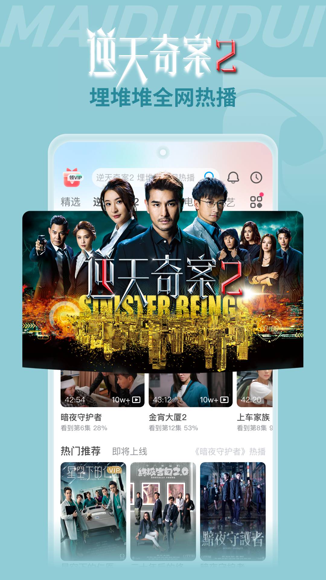 正版独播,众多题材,满足你的喜好。涵盖警匪、商战、古装、都市等各类题材,更有TVB独家授权内容,保证正版高清画质。