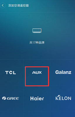 在设备列表中选择一个空调品牌,确保手机与空调处于同一网络环境。