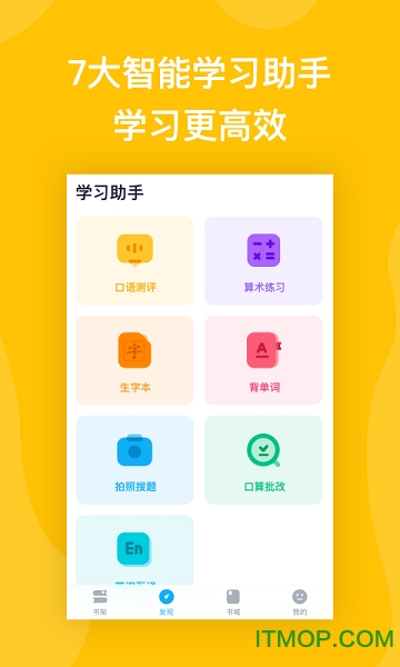 【学习助手】书链图书内置7大智能学习助手,包括算数练习、生字本、口语测评、背单词、拍照搜题等功能,帮助用户夯实基础,拓展提升,让学习更加高效便捷。