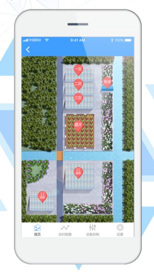 1、首页:智慧农业区域展示;首页界面简洁明了,用户可以快速查看各个智慧农业区域的实时状态,包括设备运行情况、环境数据等,方便用户进行统一管理。