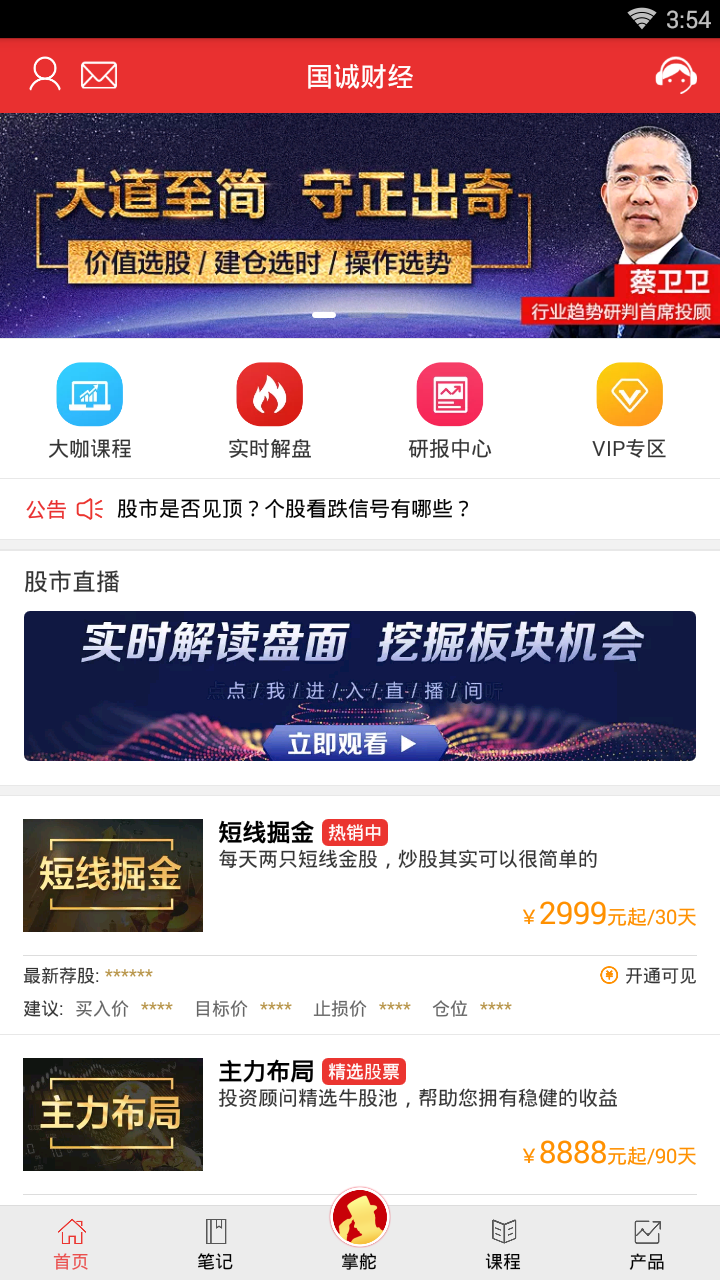 国诚财经是一款专注于金融知识普及与实战投资指导的智能软件,致力于为用户提供全面、专业、便捷的股票投资服务。通过国诚财经APP,您可以随时随地获取最新市场动态,学习顶尖投资高手的实战技巧,掌握前沿金融工具的使用方法。无论是股市新手还是资深投资者,都能在这里找到适合自己的学习路径和投资策略。平台汇聚了海量优质资源,包括独家课程、实时行情分析、深度研报等,助您在投资道路上稳步前行。