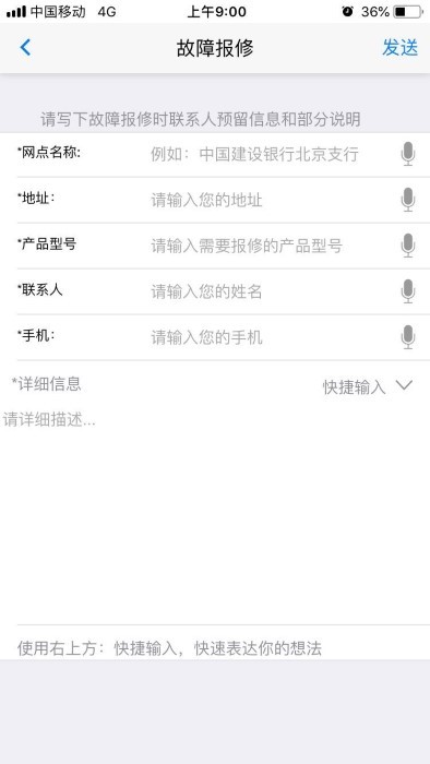 故障报修,自定义完成网点,地址等相关信息的填写就可以发布故障维修订单。用户只需简单几步即可完成报修申请,系统会自动分配售后人员跟进,确保问题快速解决。