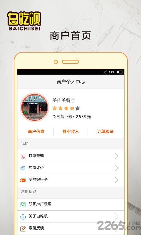 白吃呗商家版是由河南惠邦电子商务有限公司精心打造的一款专为白吃呗商家服务的手机客户端。该软件致力于为入驻商家提供便捷的移动办公解决方案,帮助商家随时随地高效管理店铺运营。通过白吃呗商家版,商家可以轻松处理订单、查看营业数据、与用户互动,从而全面提升经营效率。无论是小型餐饮店还是大型连锁企业,白吃呗商家版都能满足不同规模商家的需求,助力商家在激烈的市场竞争中脱颖而出。