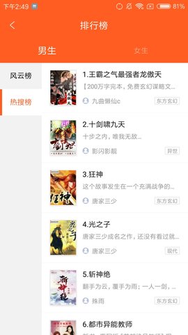 权威榜单助力选书:软件提供热搜榜、风云榜、新书榜等多种权威榜单,让你可以轻松了解当前最受欢迎的作品。榜单数据实时更新,反映真实的读者喜好,是你选书的最佳参考。