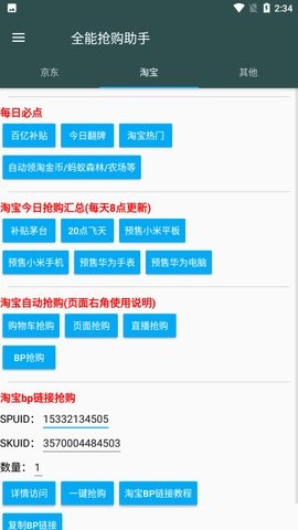 秒杀抢购:专为秒杀活动优化设计,自动跳转秒杀页面,配合精准的时间校准功能,大幅提升抢购成功率。