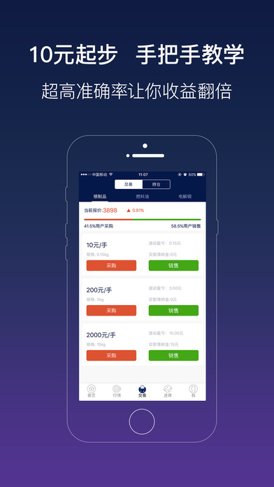 app内置的微盘交易系统,支持原油、铜、白银等多种标的,10元起投的灵活机制让投资变得触手可及。简洁易懂的操作界面配合系统化教学,使其成为新手入门的最佳选择。
