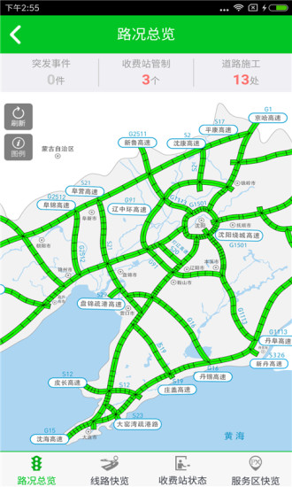 “辽宁高速通”是辽宁省高速公路运营管理有限责任公司向公众推出的信息化服务和路况查询软件,为公众出行提供实时、准确、便捷、个性化的交通信息服务。让您可以随时、随地、全方位的掌握辽宁省内高速公路的交通路况,提供个性化路况导航服务,同时提供高速周边服务区、旅游景点等信息。