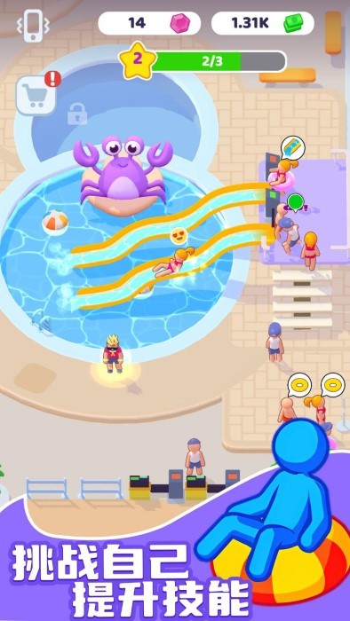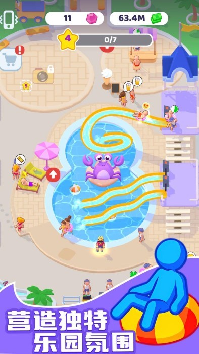 进一步扩展您的帝国:通过合理经营积累资金,收购相邻地块,将小型水上乐园发展成跨国连锁品牌。
