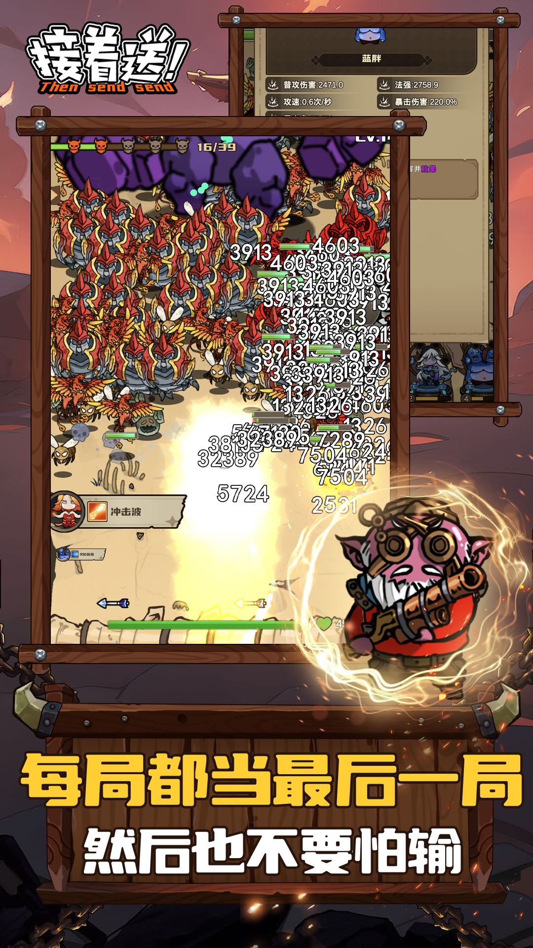《接着送》是一款打破常规的策略动作游戏,将割草般的爽快战斗与烧脑的策略玩法巧妙结合。游戏采用独特的"英雄召唤+装备合成"双核心机制,玩家可同时操控5位能力各异的英雄,从范围轰炸的炮兵到团队治疗的医者应有尽有。更令人惊喜的是,游戏中的装备合成系统充满创意,比如将长剑与盾牌组合就能打造出具有反伤效果的大剑。30多位英雄都拥有专属成长路线,而200多种装备组合还能触发"冰火两重天""毒电交响"等元素连锁反应,让每一场战斗都充满变数,仿佛在体验Roguelike卡牌构筑的乐趣。