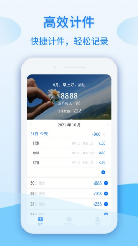 在现代职场中,如何确保工作时间和工作内容的准确性是许多职场人士面临的挑战。为了帮助用户高效管理日常工作,这款记工时计件的app应运而生。它不仅能够精准记录每日的工作时长和工作质量,还能通过智能计算功能帮助用户轻松掌握收入情况。用户只需提前设置好工作内容和单价,再输入总数量,系统便会自动完成工资计算。此外,软件还支持时薪工种与打卡时间联动,自动生成当日工资报表,让薪资管理变得前所未有的便捷。