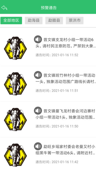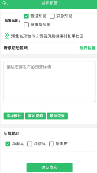 用户可以通过APP的预警发布功能,详细描述观察到的亚洲象活动情况。系统支持添加现场照片、录制语音描述或上传视频片段,并可以精确定位象群出现的位置。这些信息经过审核后会立即推送给附近的其他用户,形成社区联防联控网络。