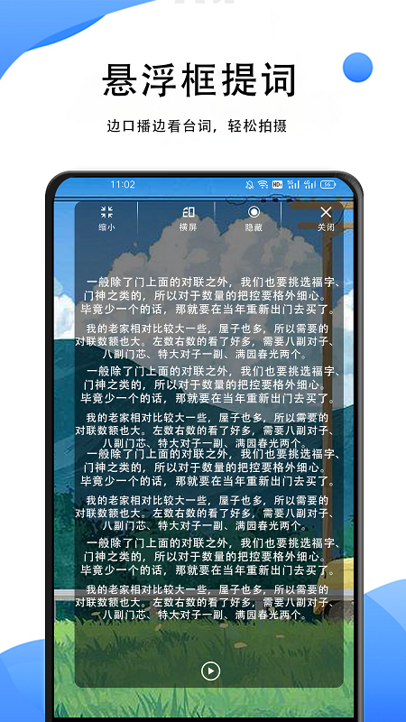 【悬浮提词】支持边播边看台词,悬浮提词智能拍。这一功能让用户可以在进行视频录制或直播时,无需切换界面即可实时查看提词内容,极大地提升了操作的流畅性和效率。