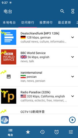 睿卓RadioDroid汇聚了世界各地的电台资源,让您能够一网打尽,与好内容不期而遇。不论您钟情于哪种音乐类型,喜欢听取哪一地区的新闻,都能在这里找到满足。从国内到国外,从流行音乐到古典音乐,从资讯到娱乐,为您提供了无限选择的可能性。此外,睿卓收音机还支持多种语言切换,方便不同语言背景的用户使用。无论您是在家中、办公室,还是在旅途中,只需打开手机,即可畅享全球广播的精彩内容。