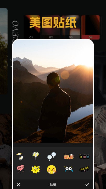 可爱贴纸:软件提供了海量创意贴纸资源,包括甜美可爱风格、超A酷炫风格等多种类型,应有尽有,让你的照片更加生动有趣。