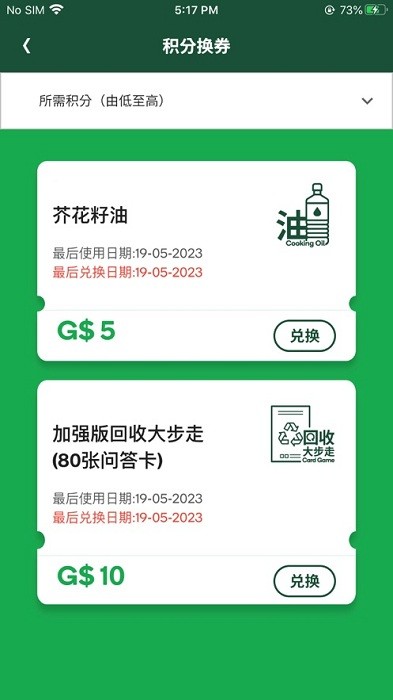积分兑换奖励:积分商城提供多样化的兑换选择,包括日常生活用品、环保产品、超市礼券等。用户可根据个人需求自由选择兑换方式。