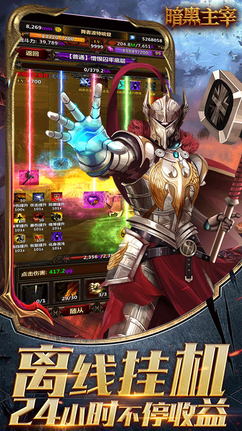 暗黑主宰是一款充满魔幻色彩的放置类卡牌手游,游戏采用复古像素风格打造,虽然画面略显粗犷,却完美还原了经典暗黑冒险的独特韵味。在这里,玩家将开启一段精彩纷呈的地下城探险之旅,从神秘的地牢探索到惊险的迷窟冒险,从神圣的圣物殿堂到刺激的关卡挑战,多样化的玩法让每一次冒险都充满惊喜。游戏不仅支持单人挑战各种强力BOSS,更提供了丰富的社交系统,玩家可以组建公会、结交战友,在合作与竞争中不断提升实力,最终成为这片暗黑大陆的真正主宰者。