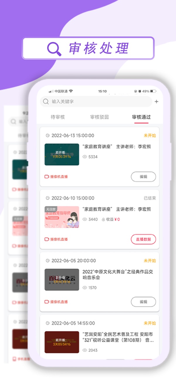 审核直播间:运营人员可以对直播间的标题、时间、封面图、详情等内容进行审核处理。如果发现不符合要求的内容,系统会进行驳回并提示修改建议,确保直播内容的合规性和专业性。