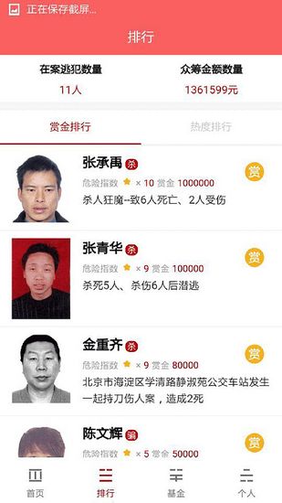 【通缉犯排行】基于大数据分析生成实时榜单,综合考虑赏金额度、搜索热度、案件严重程度等因素,帮助用户掌握重点追逃对象。