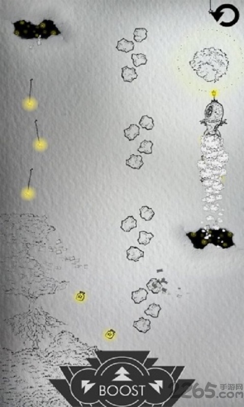 游戏最令人惊艳的是其独特的艺术表现力。整个宇宙背景就像一幅正在绘制的素描作品,火箭的飞行轨迹仿佛艺术家手中的铅笔线条,陨石碎片则像是随意散落的橡皮擦屑。这种简约而不简单的美术风格,配合精心设计的物理引擎,让每一次飞行都充满艺术美感。