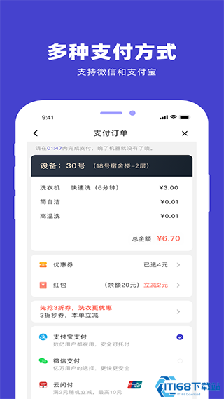 U净洗衣机是一款创新的互联网洗衣助手,为用户带来全新的洗衣体验。通过手机APP,用户可以轻松完成从下单到取衣的全流程操作。只需扫描二维码即可快速下单,支持在线预约洗衣机,避免排队等待。软件提供多种洗衣模式选择,满足不同材质衣物的洗涤需求,还能智能推荐最近的可用洗衣机。洗衣过程中可实时查看剩余时间,洗衣结束后会及时提醒取衣。支持微信、支付宝等多种支付方式,让洗衣变得更加智能便捷。