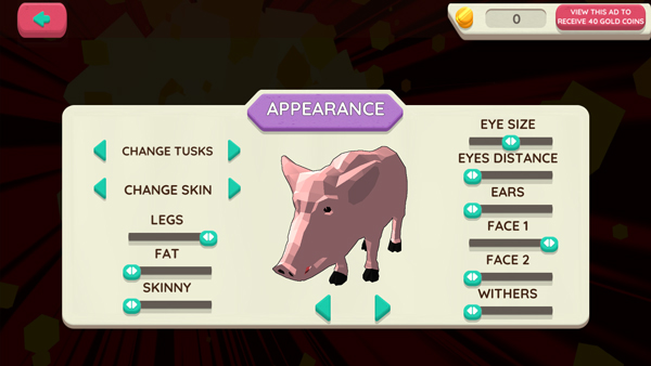 1、启动游戏后首先进入角色编辑器,通过滑动参数条调整小猪体型,从圆润到精瘦共有5种基础模板可选