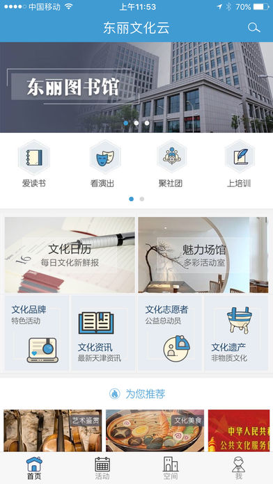 社团风采:收录全区136个注册文化社团的数字化档案,包含京剧票友会、海河摄影协会等特色组织。创新开发的"社团星推官"功能,允许用户通过短视频了解社团日常,参与线上招新会。年度社团评优活动可积累文化积分兑换纪念品;