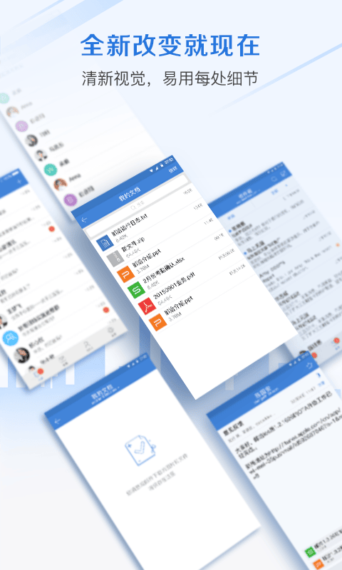 - 支持与内外部人员进行即时通讯,可自由互传语音、图片及各类办公文件(包括word、wps、ppt、pdf等格式)。