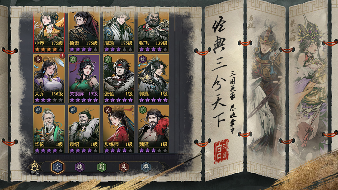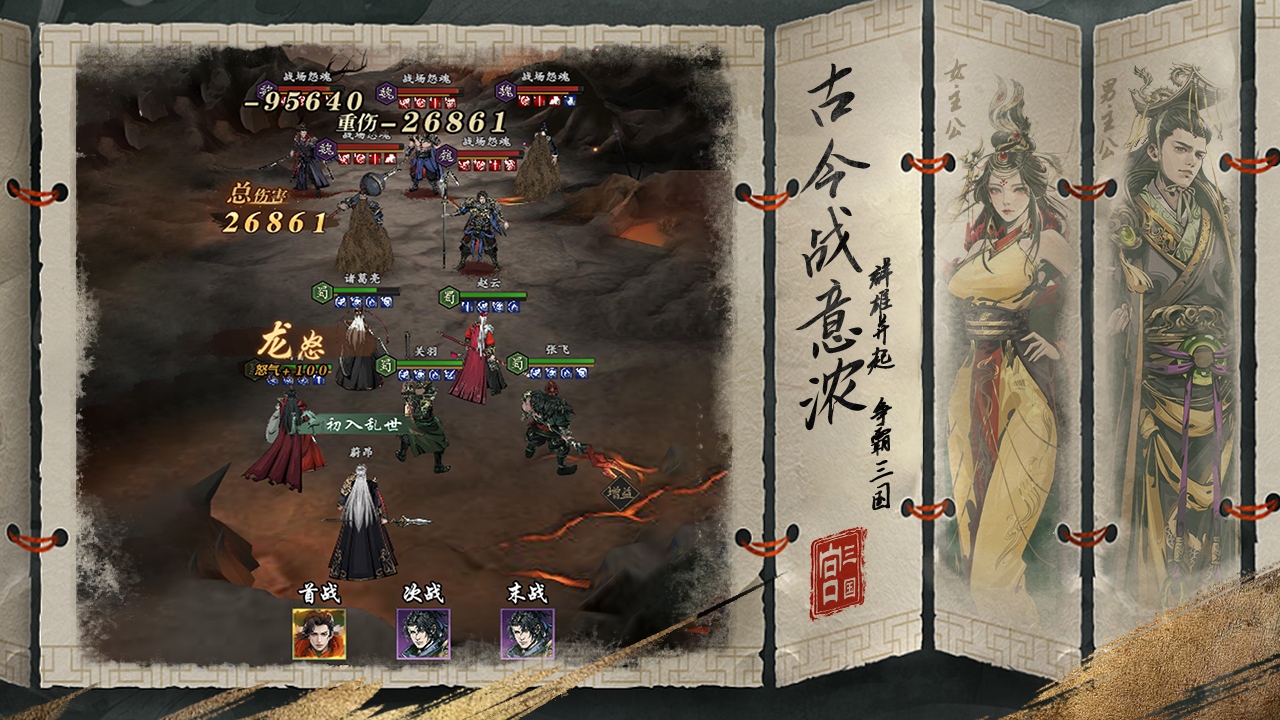 水墨风的三国真的太惊艳了,武将们的形象都很有韵味,收集不同武将,看他们因为羁绊产生联动,搭配出强力阵容,战斗胜利的时候特别有成就感。特别是看到自己精心培养的武将释放华丽的必杀技时,那种满足感难以言表。游戏中的剧情过场也制作精良,将三国经典故事以全新的艺术形式呈现,让人耳目一新。