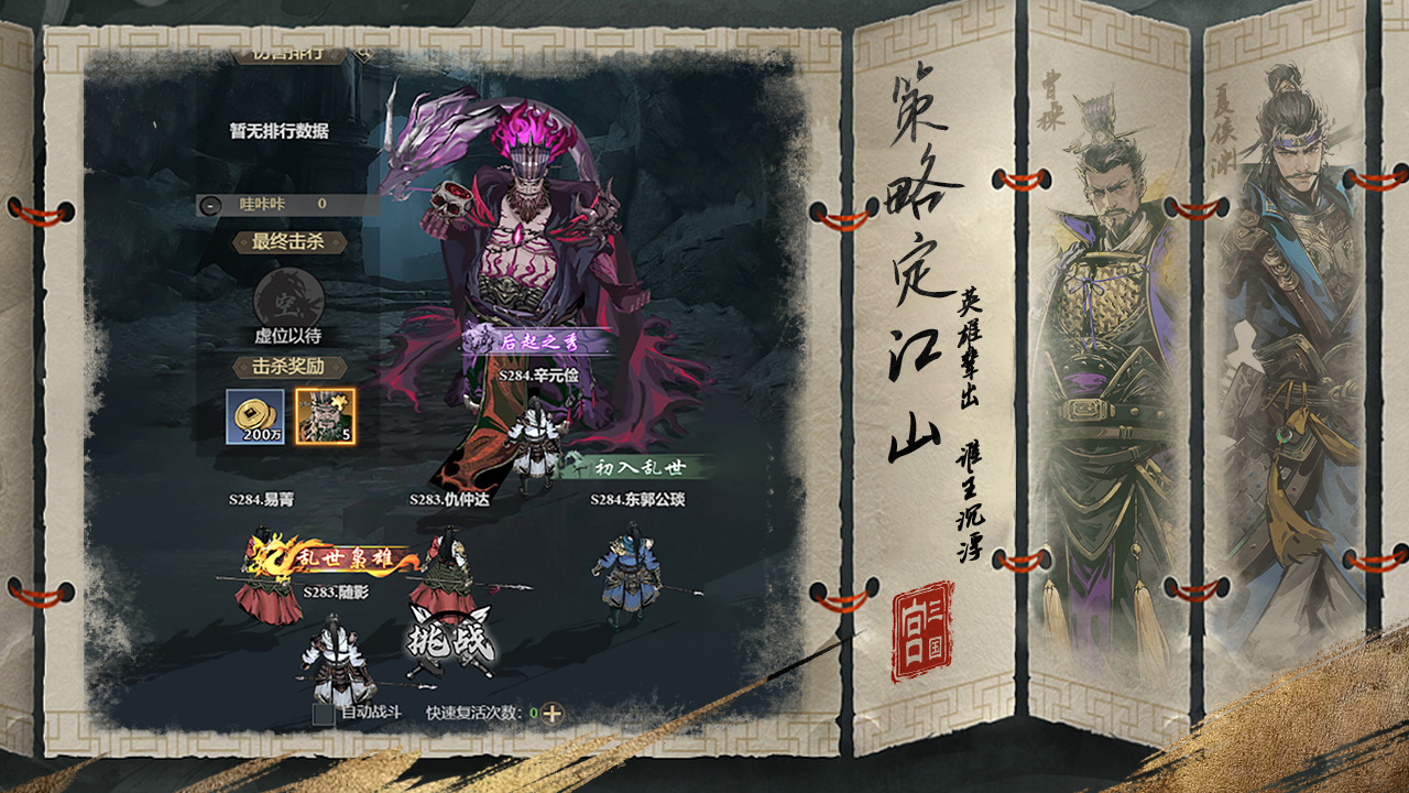 羁绊搭配技巧:深入了解武将间的羁绊关系是制胜关键。建议围绕2-3个核心羁绊来组建阵容,比如以五虎上将为核心的蜀国阵容,或者以五子良将为轴的魏国阵容。不同阵营的混搭也能产生奇效,比如搭配触发"乱世枭雄"这类跨阵营羁绊。同时要注意武将的站位安排,前排放置坦克型武将保护后排输出。