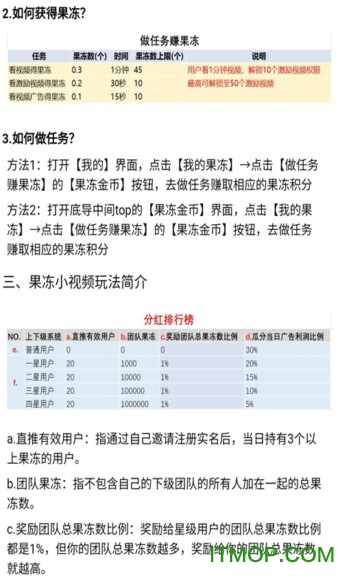 平台设有完善的等级晋升体系,一星达人需直推20位有效用户并组建1000人团队,可享受团队总果冻1%的奖励,并参与每日20%广告分红。二星达人需直推20位用户并组建1万人团队,同样享有团队总果冻1%奖励和每日15%分红权益。观看1分钟基础视频可解锁10个激励视频权限,最高可解锁50个激励视频。观看30秒激励视频可获得0.2个果冻,每日上限10个果冻。有效用户定义为持有3个以上果冻的活跃用户,平台会定期对用户活跃度进行评估,确保奖励机制公平合理。不同等级用户还可享受专属客服、优先提现等VIP特权。