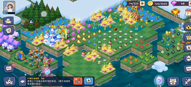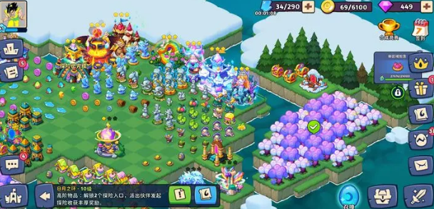 四、合成系统遵循5合2、10合4的进阶规则。合成时要注意保持5的倍数,避免资源浪费。游戏包含11-14级不同等级的奇迹建筑,建议用10个次级奇迹进行合成,既节省资源又便于后续升星。开地除杂时要注意遗迹物品的提示,这是解锁新地块的重要信号。