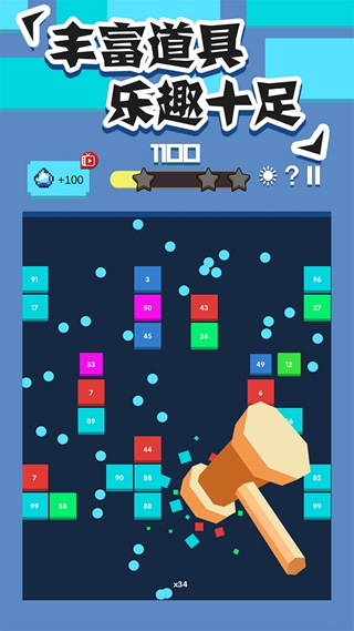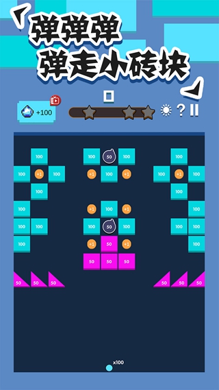 打开游戏界面进入的就是要展现你的弹球技巧,滑动屏幕,瞄准方向,发射弹球,打爆满屏的方块,玩法简单,尽在指尖!