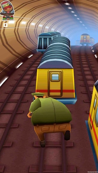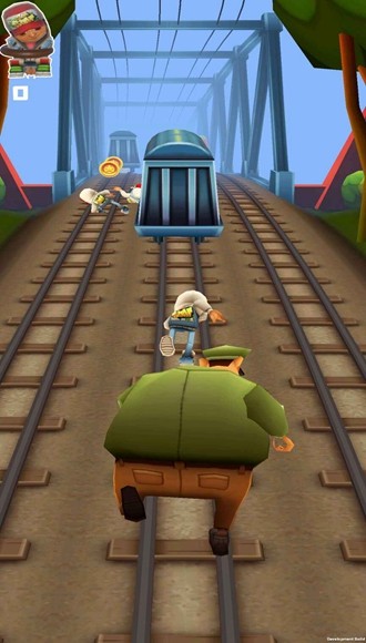 在游戏中,玩家需要操控保安大叔在地铁轨道间奔跑,目标是抓住那些捣乱的跑酷"小坏蛋"。与原著不同,收集金币在这里变得无关紧要,真正的得分关键在于成功抓捕的数量。游戏操作颇具挑战性,保安大叔因为体型原因移动略显笨拙,反应速度也稍慢,这增加了游戏的难度和趣味性。特别需要注意的是,跳跃动作要掌握好时机,否则可能会卡在火车上发生意外。新增的横扫飞腿技能非常强力,可以一脚踢飞整节车厢,但要注意只能单节使用,连续踢多节车厢会导致角色直接阵亡,这个设定既真实又充满恶搞趣味。