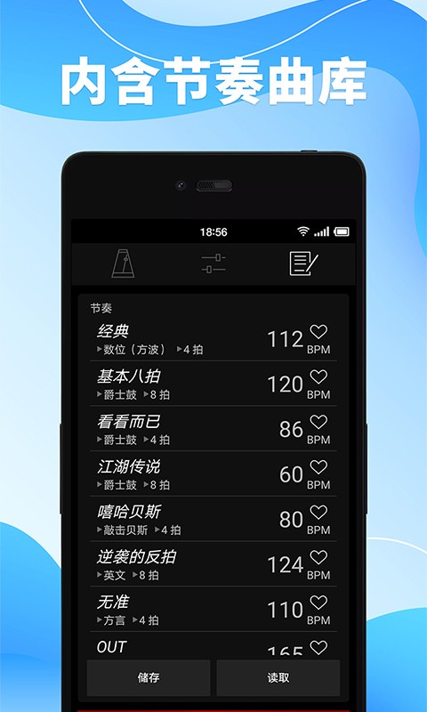 可以保存常用的节拍、节奏型、BPM和音色,无需在每次练习前进行重复设置,非常便捷;