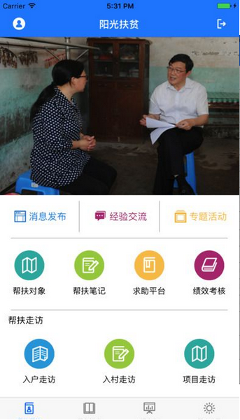 一键分享:新增了便捷的"一键分享"功能,支持通过微信、微信朋友圈、QQ、新浪微博等多种社交平台将阳光扶贫app分享给更多人,扩大扶贫工作的社会影响力。