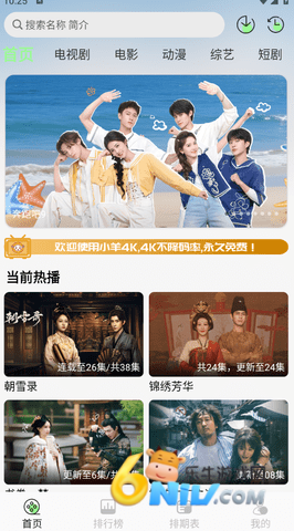 打开小羊4K应用,进入简洁明了的主页界面,顶部显眼位置设有搜索框。