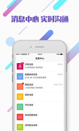 3.消息中心:智能分类各类业务通知,支持按优先级排序,重要消息强提醒,历史消息云端存储,确保商家随时查阅过往记录。