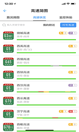 5、路网事件:建立事件分级推送机制,重大事故即时弹窗提醒,普通施工信息定时汇总,用户可根据行程自定义关注路段,获取精准事件推送。