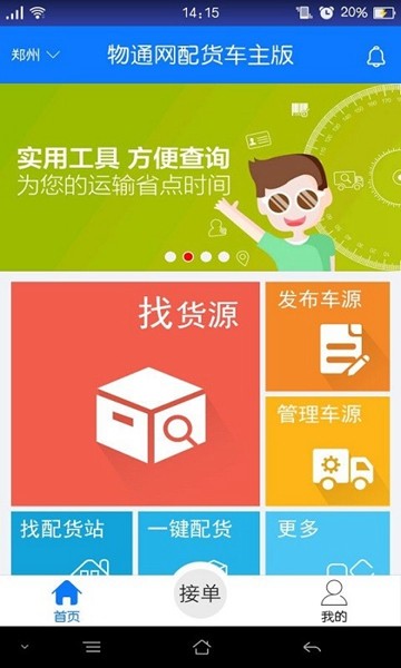 1、下载物通网配货车主版APP并安装,进入直观易用的主界面;