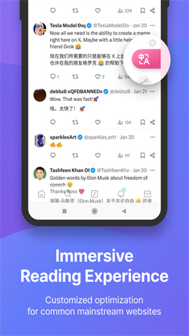 2、直接点击网页右侧的快捷图标,翻译更流畅;悬浮窗设计让翻译结果与原文对照显示,支持段落级精准翻译。用户可调整显示字体大小和配色方案,打造个性化阅读体验。
