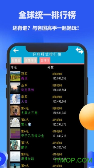 丰富的排行榜系统包括日排行、月排行和全球总榜,让竞技乐趣持续升级。