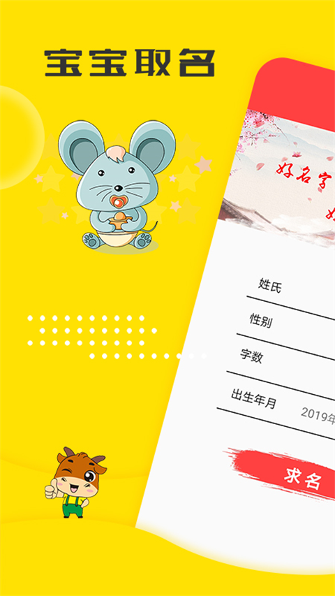 自助起名:独创的自助取名服务,确保姓名中的每一个字都是你所喜爱的,给予你极大的自由度来量身定制一个独特的名字。系统会根据你的选择实时生成新组合。免费起名秘籍:你可以免费领取详尽的起名秘籍,介绍宝宝的生肖忌讳和五行补缺等起名规则。这个app还提供汉字五行/笔画查询的功能,助你轻松为宝宝选一个伴其一生的好名字。秘籍内容定期更新,紧跟命名学最新研究成果。免费起名服务:这款起名大全融合了传统文化的生辰八字、五格三才、周易八卦、古诗文,运用大数据智能化的方法,为宝宝快速起名。更重要的是,这一切都完全免费,你没有任何花费也能轻松搞定名字。系统每天可生成上千个名字组合供你选择。
