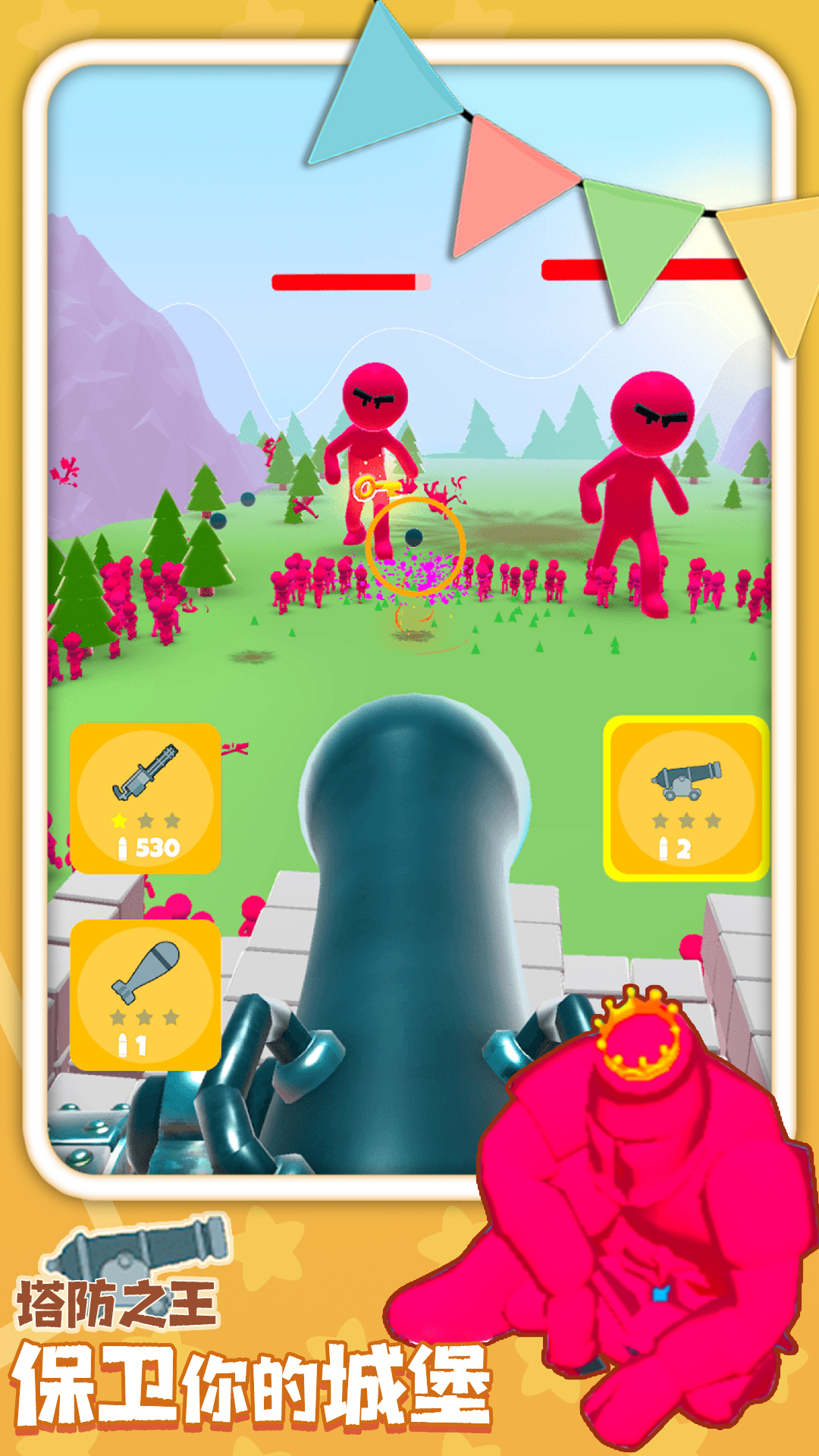 游戏的核心玩法是保卫城堡,抵御如潮水般涌来的敌军。玩家可以解锁包括火炮、箭塔、魔法塔等多种防御设施,每种武器都有独特的攻击特性和升级路线。击败特殊的世界首领后,玩家将获得稀有资源来强化武器库。游戏还设有多种难度模式,从休闲到硬核玩家都能找到适合自己的挑战。随着游戏深入,玩家还能解锁特殊技能和强力道具,为防守战增添更多策略选择。