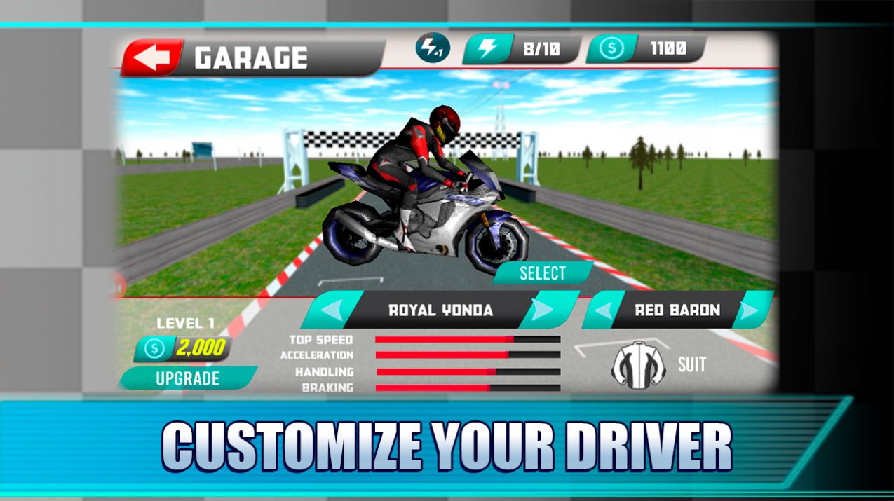 4、刺激的摩托车竞速玩法,尽情,赢取更多的游戏奖励。完成每日任务可获得双倍奖励,参与排名赛更有机会获得限定版摩托车皮肤。