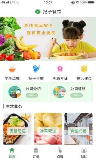 5、可查看公司的概况,以及采购等情况。平台公开透明展示供应商资质、食材检测报告、厨房卫生评级等信息。家长可以追溯每道菜品的完整供应链,了解食材从农场到餐桌的全过程,包括种植环境、运输条件等关键环节的详细信息。