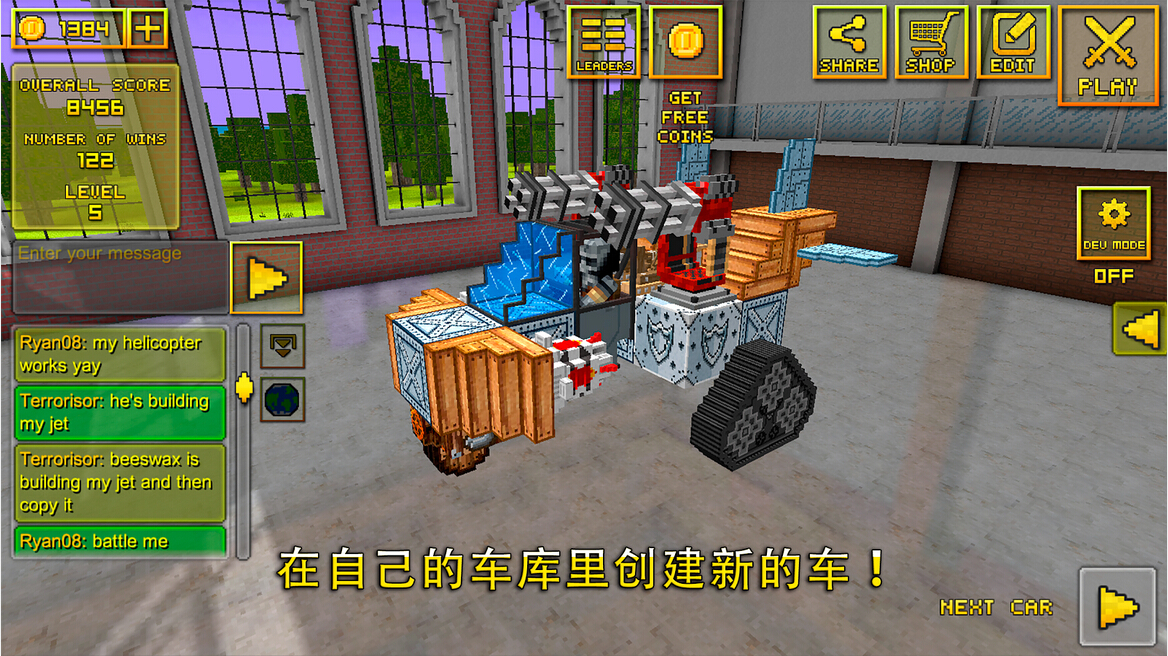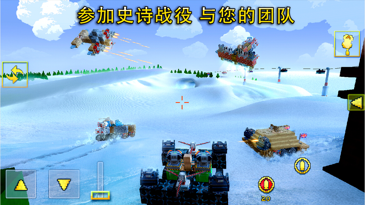 *收集方块,打造迷你汽车或者巨型坦克怪兽。游戏提供超过90种不同材质和功能的方块,从轻量化合金到重型装甲,让你可以随心所欲地设计战车外观和性能。
