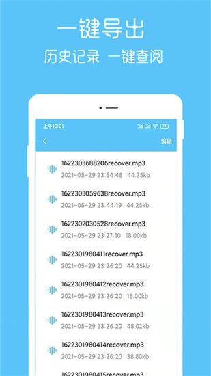 【语音一键导出】提供了完善的语音文件管理功能,支持将手机中的语音文件一键导出为MP3、WAV等多种格式。用户可以随时查看导出历史记录,方便管理和查找过往的语音文件。