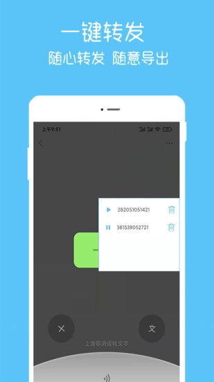 【语音一键转发】创新性地解决了用户转发语音内容的难题,支持将语音一键转发至不同社交平台和通讯软件。无论是工作交流还是朋友聊天,都能轻松实现语音内容的快速分享,让沟通更加高效便捷。